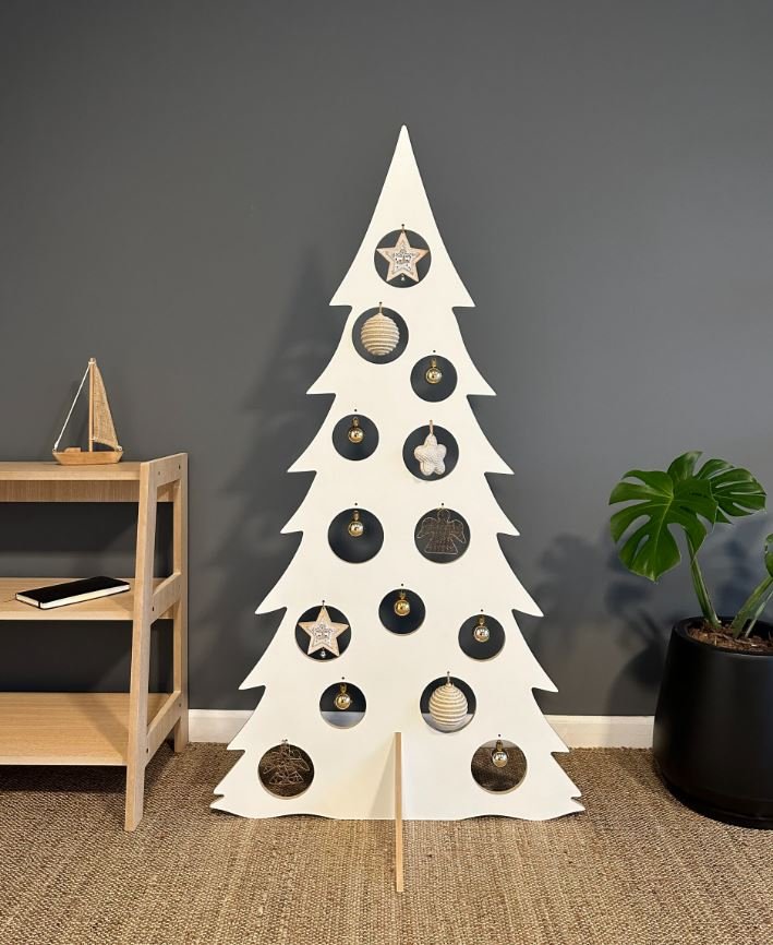 Perfecto arbol navideño Pino! Lo que necesitas para completar tu espacio navideño!. De material Melamina blanca de 12 mm de espesor. Su armado es por encastre. Se puede armar y desarmar muy rápido!