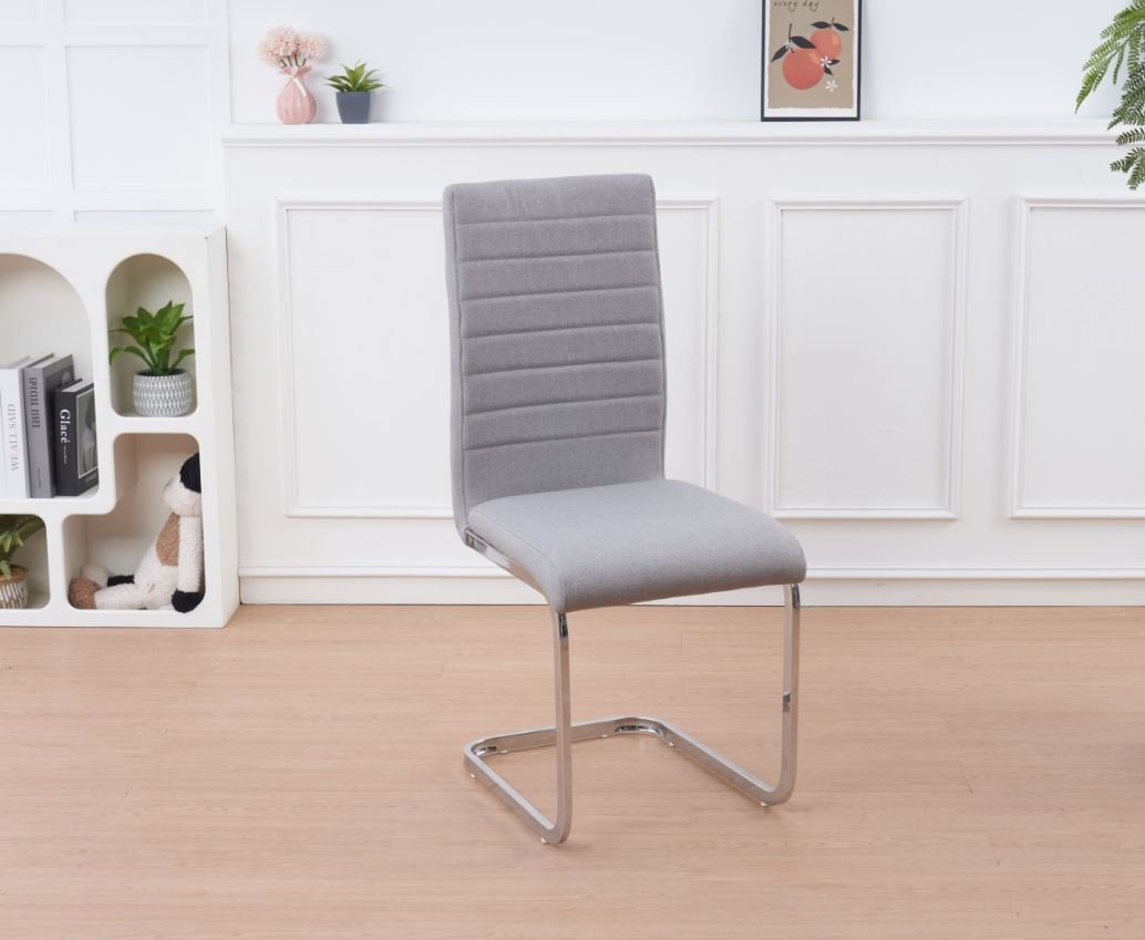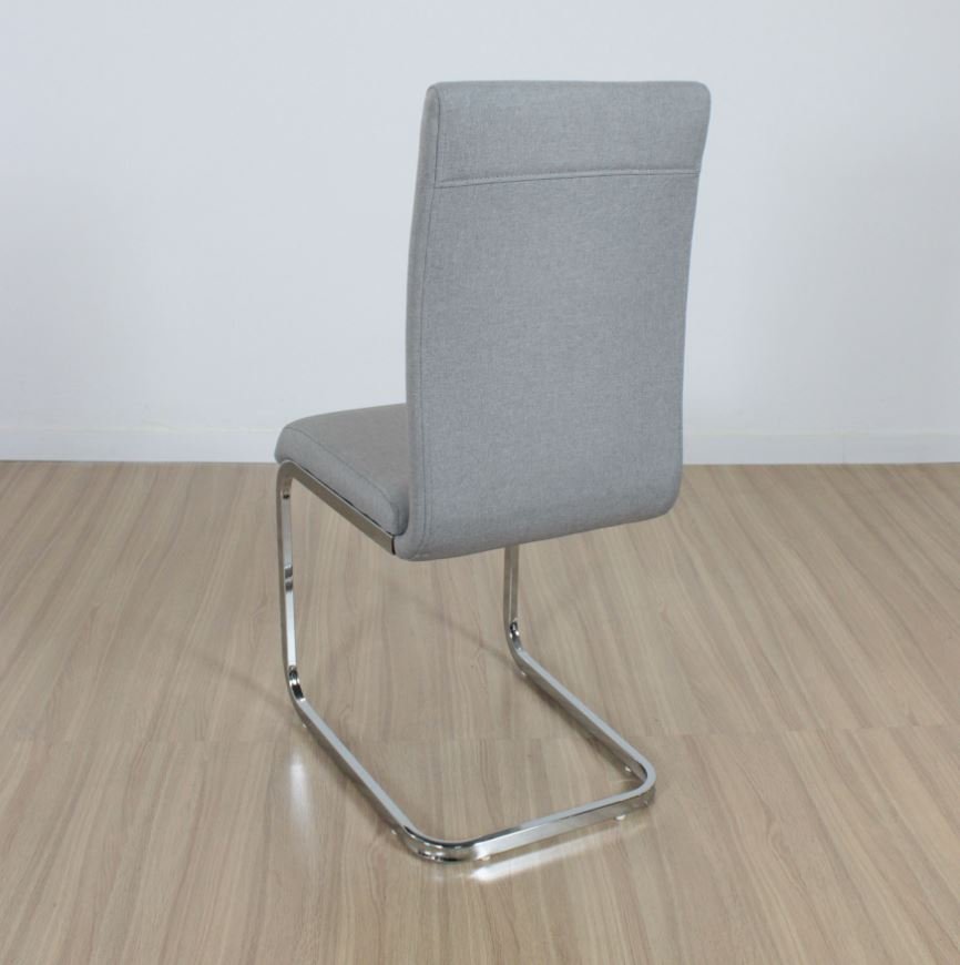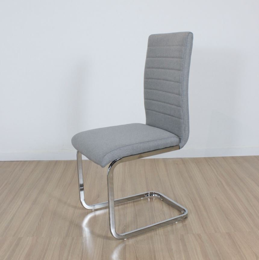 Silla moderna de comedor con estructura metálica cromada y asiento tapizado en lino con relleno acolchado de primera calidad. Su diseño elegante y funcional combina confort y resistencia, soportando hasta 150 kg. Ideal para comedor, cocina u oficina, esta silla premium cuenta con regatones que protegen el piso y aseguran mayor estabilidad. ArtÃculo importado de calidad superior, se entrega desarmado e incluye todo lo necesario para un armado fácil y rápido.