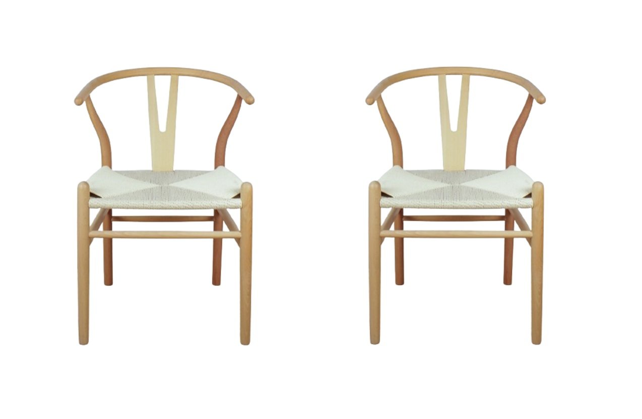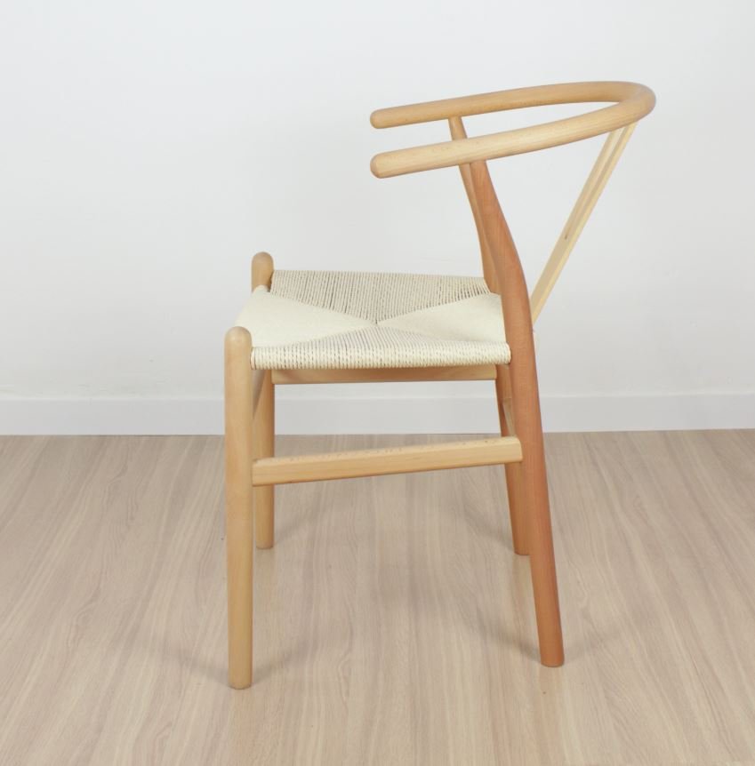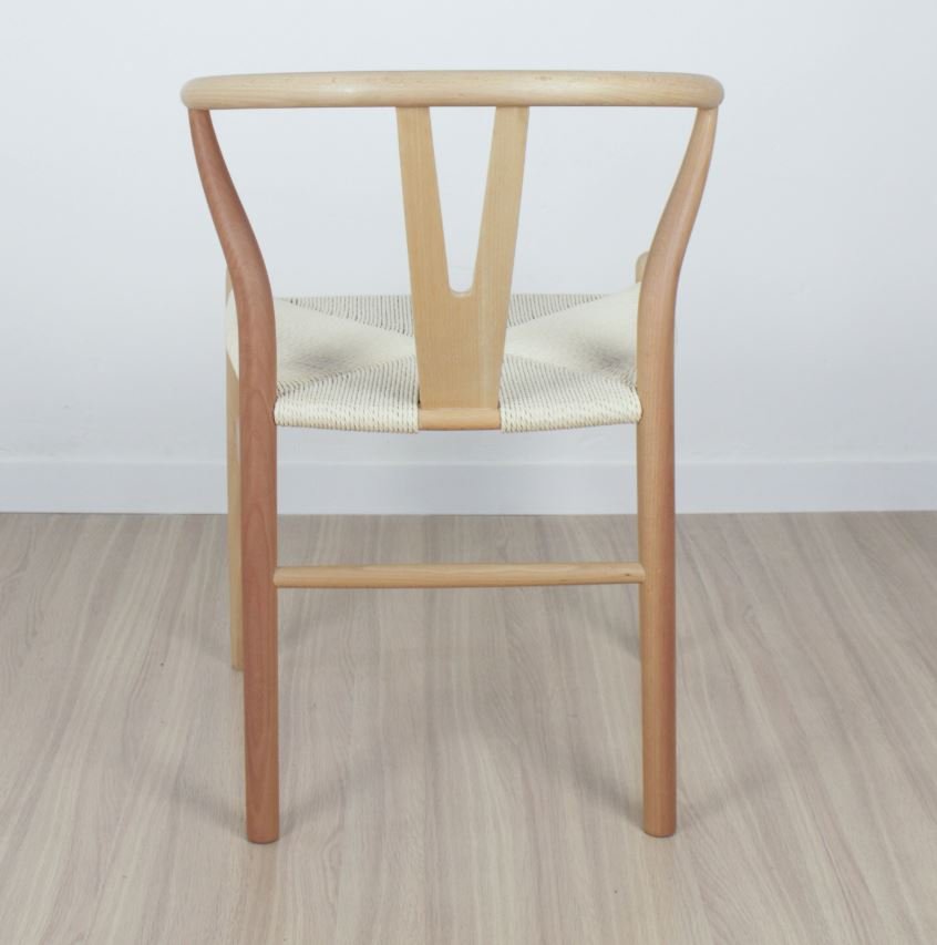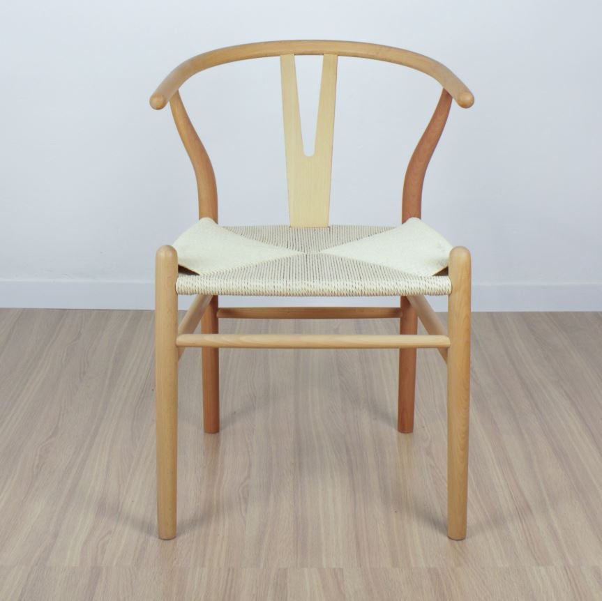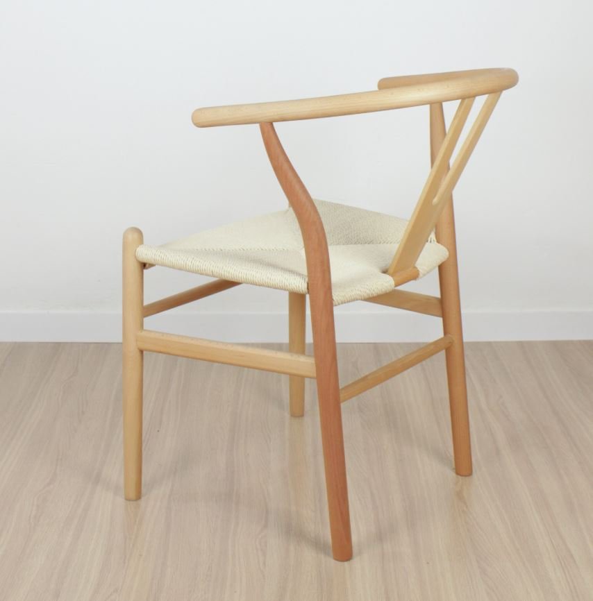 Silla Wishbone! De diseño escandinavo, esta silla combina estructura de madera de haya con asiento tejido en hilo natural, logrando una pieza resistente, cómoda y de gran estilo. Ideal para sumar calidez y elegancia a cualquier ambiente.