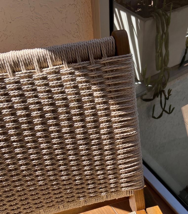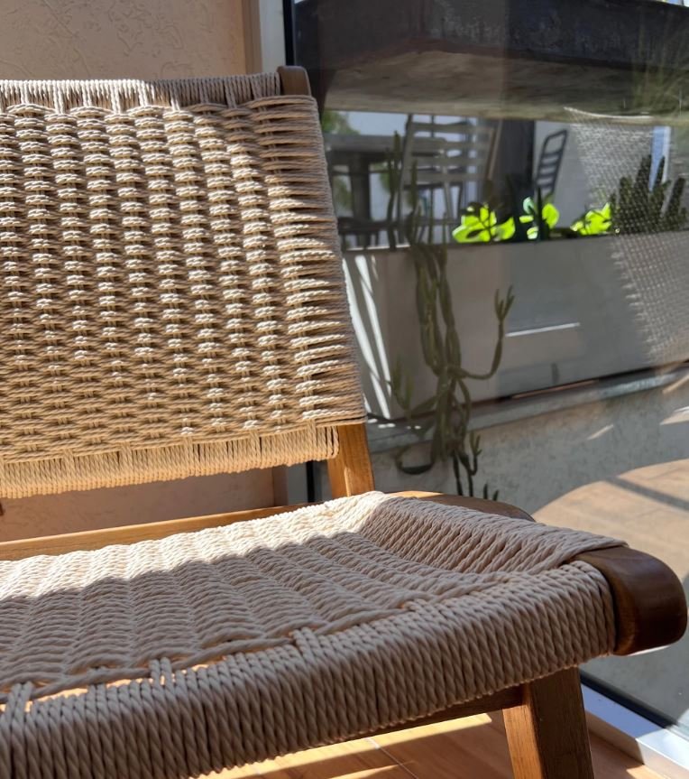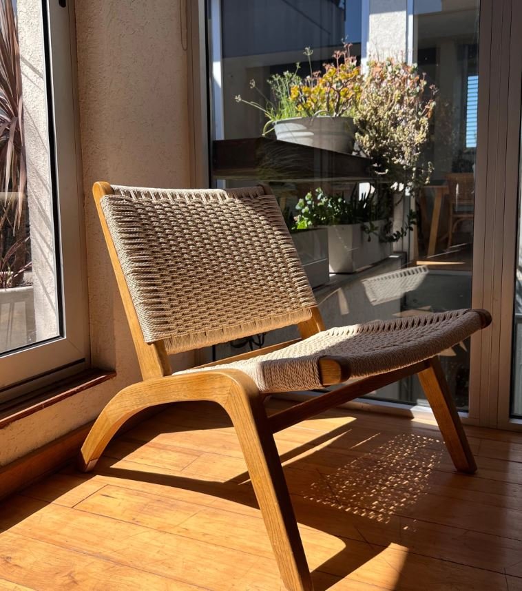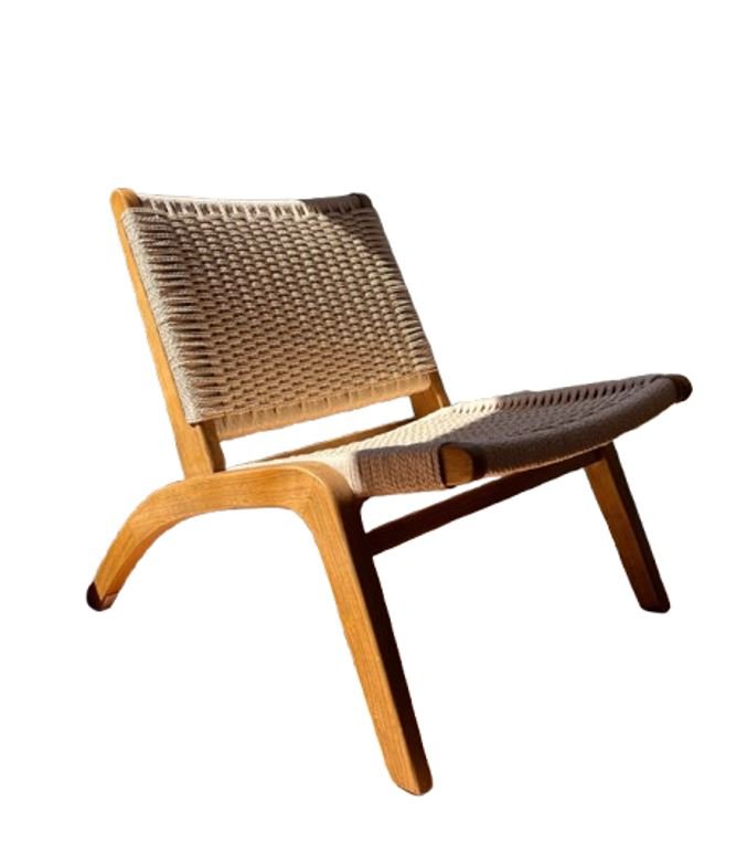 Poltrona carl hansen soga sin apoyabrazos de interior. De madera olmo y soga natural. Es apilable.