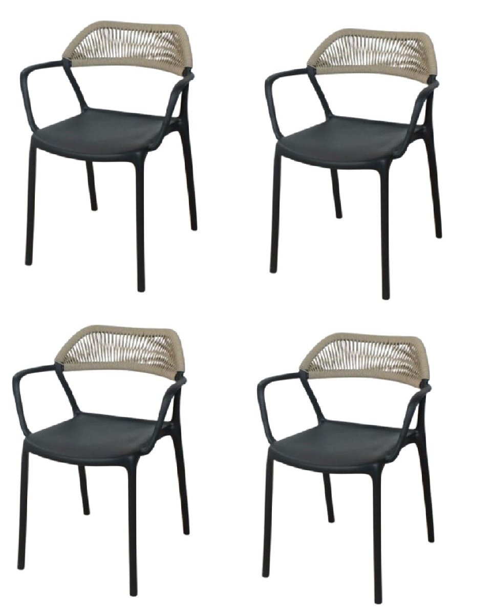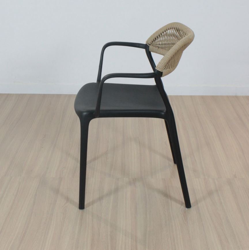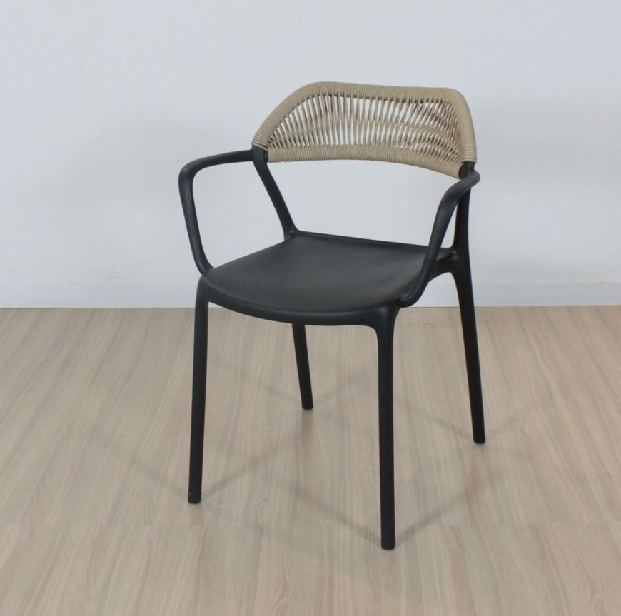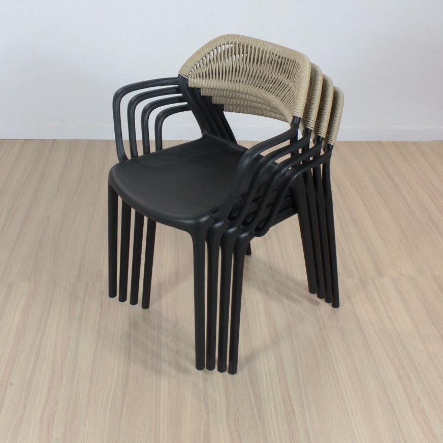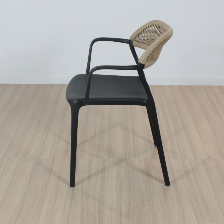 Silla de asiento de polipropileno reforzado con apoyabrazos. Apta exterior.