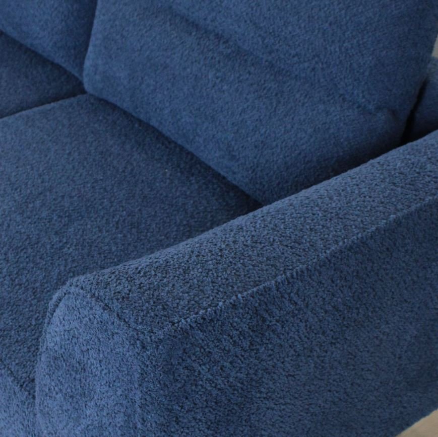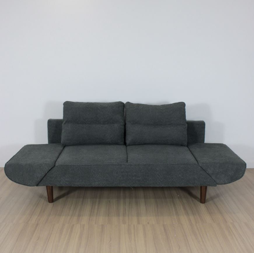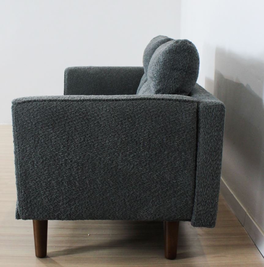 Comodidad y funcionalidad en un solo mueble. Este sillón se convierte fácilmente en cama, ideal para espacios pequeños o visitas. Tapizado en tela boucle, y patas de madera se adapta a cualquier ambiente.